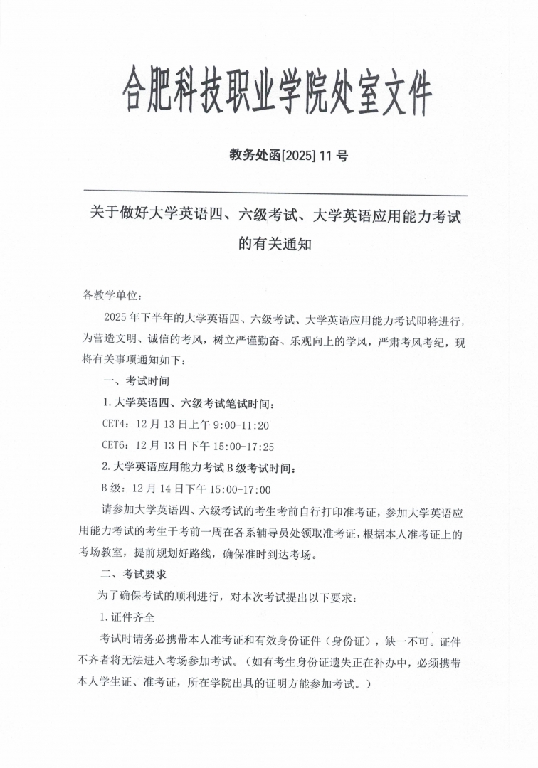 关于做好大学英语四、六级考试、大学英语应用能力考试的有关通知